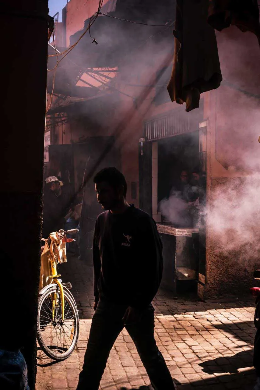 – Embrace mood over clarity. Pockets of light are about atmosphere — the feeling of mystery, discovery, and quiet drama within the chaos of the Medina.